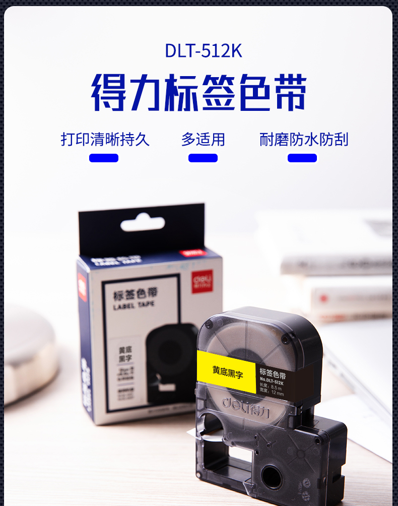 得力DLT-512K黄底黑字色带(10盒起订)