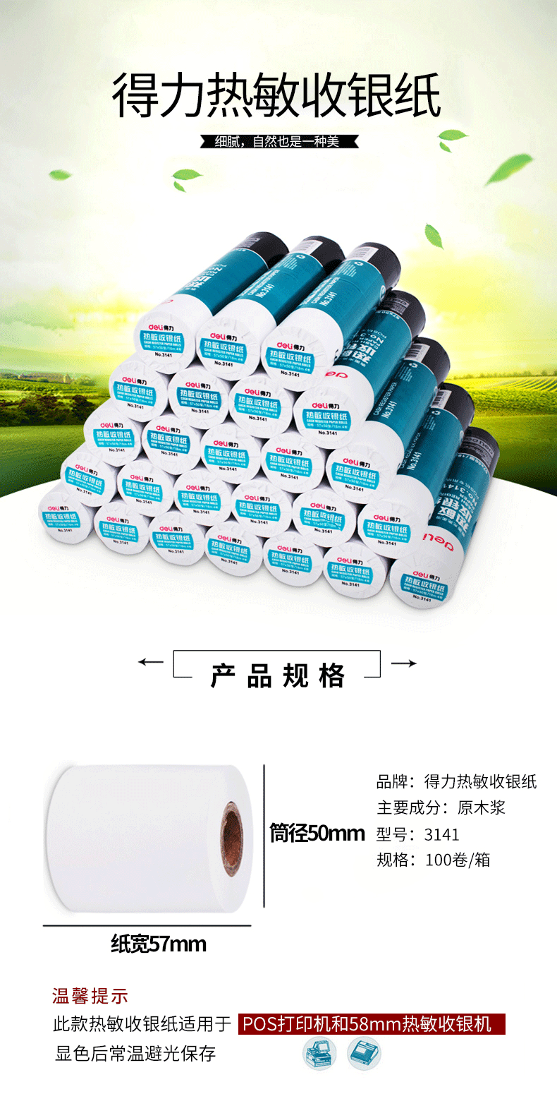 得力3141热敏收银纸25个起订