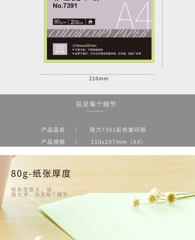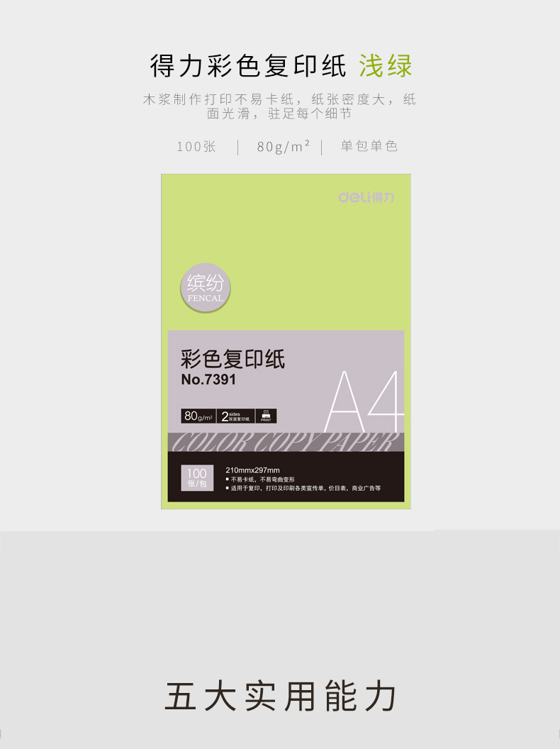 得力7391彩色复印纸浅蓝25个起订