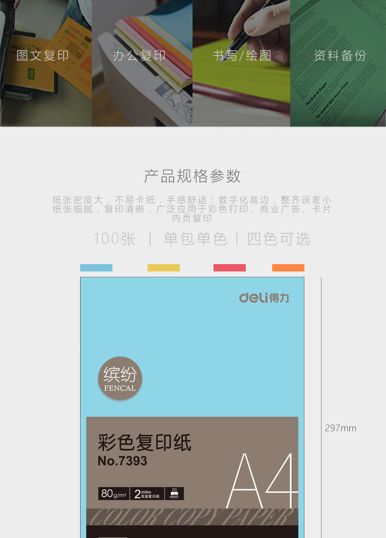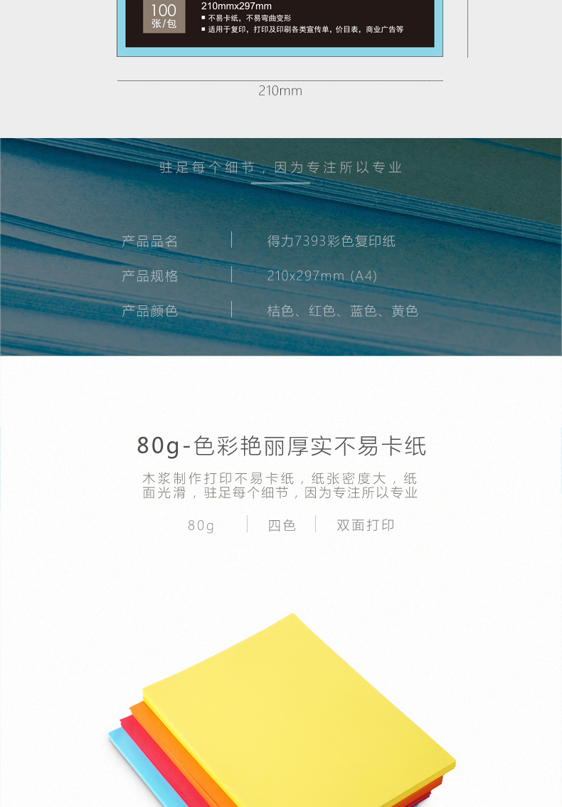 得力7393彩色复印纸红色25个起订