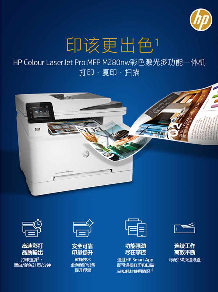 | 产品名称 : | 惠普(hp)M280NW多功能彩色激光一体机 企业办公无线WiFi激光打印机(打印复印扫描) |