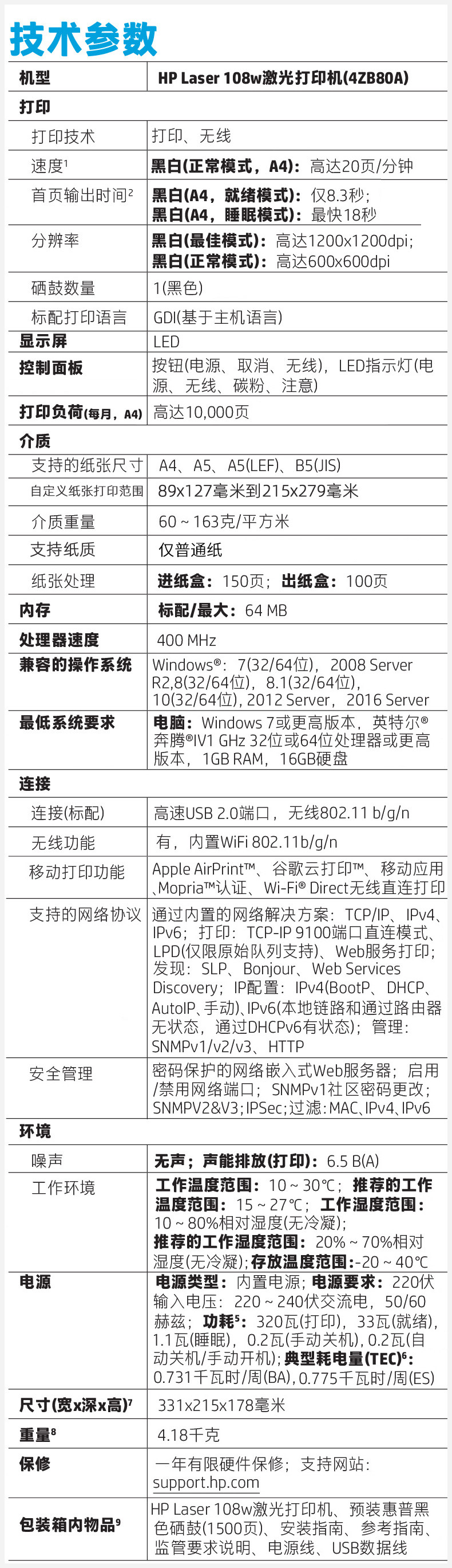 惠普(HP) Laser 108w 黑白激光打印机