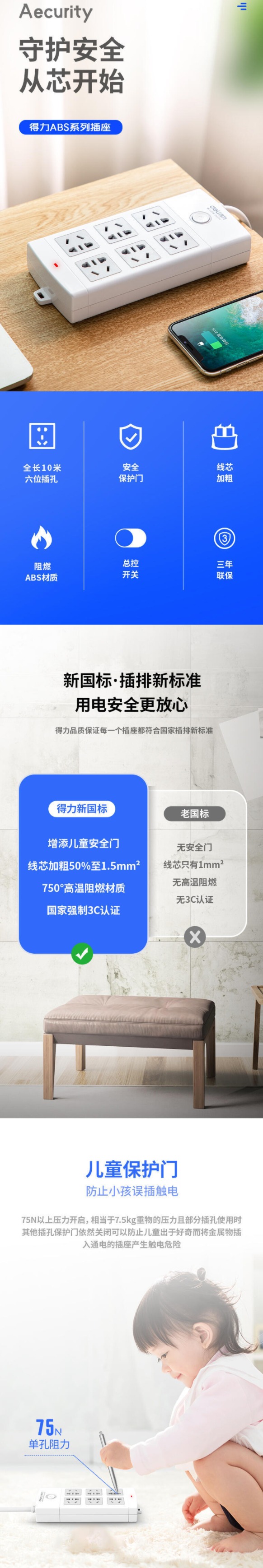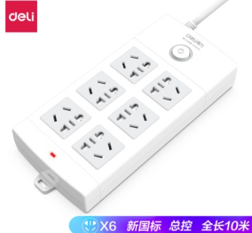 得力18207插座_6组_10米_PVC袋装(白)(只)