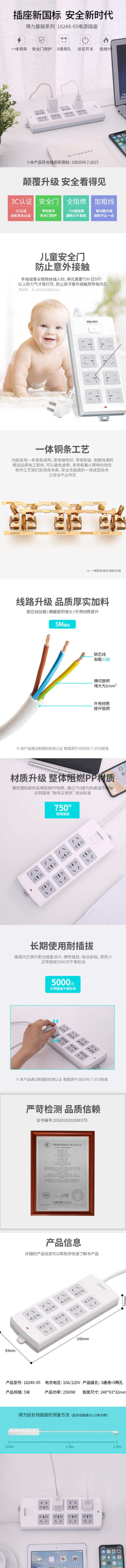 得力18248-05插座_8组_5米_PVC袋装(白)(只)