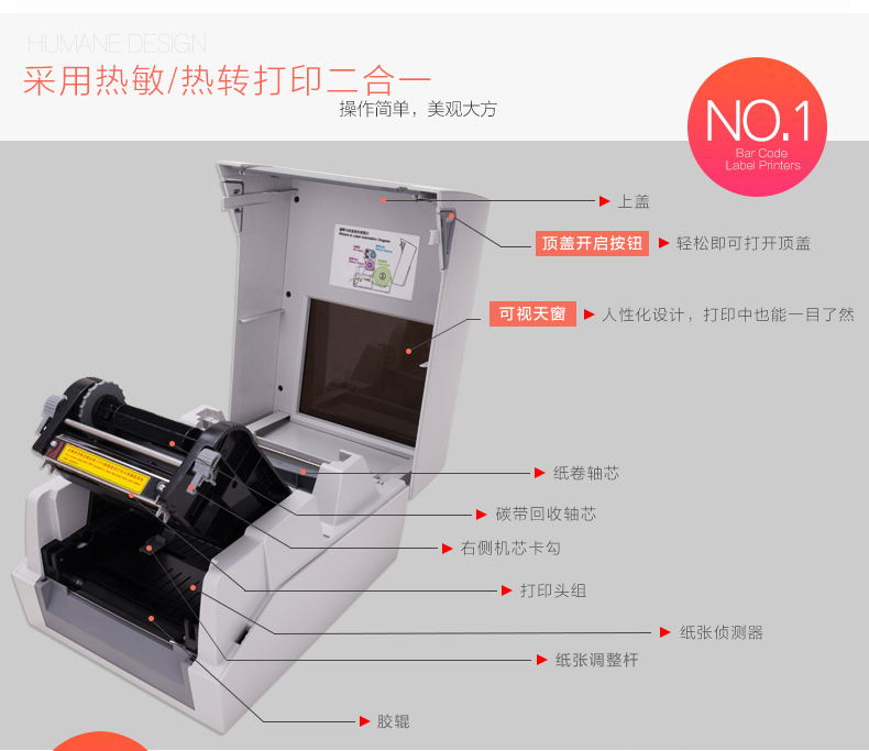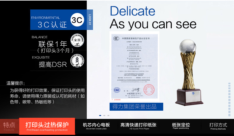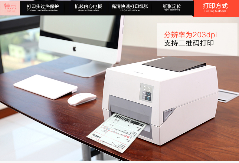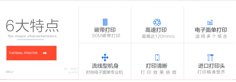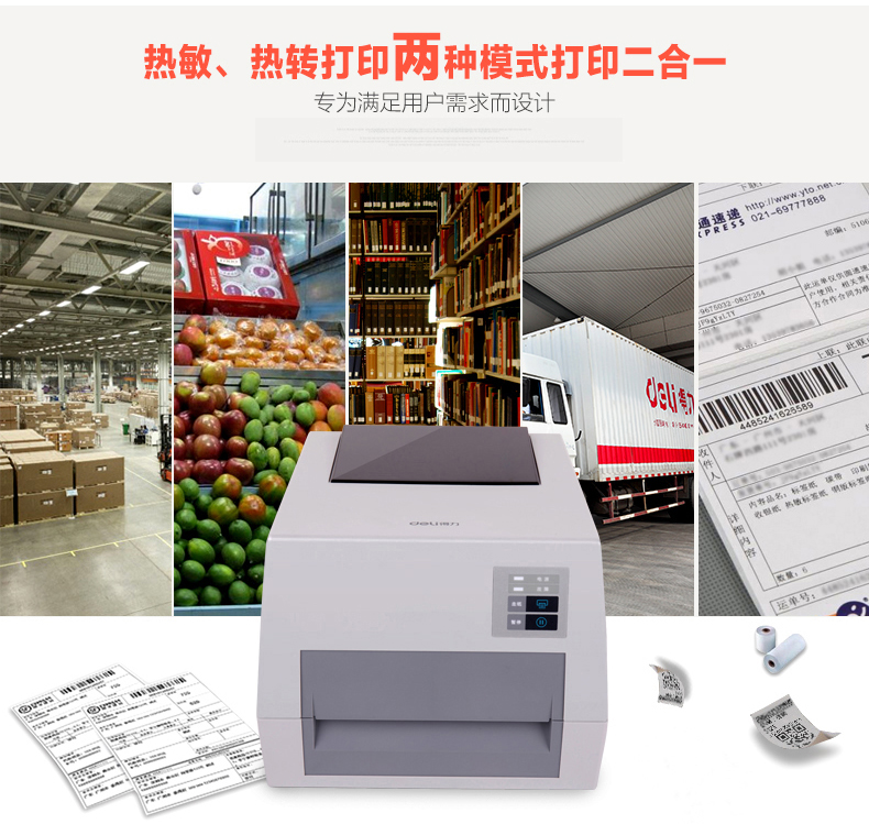 得力deliDL-820T条码打印机铜版纸标签电子面单票据碳带打印机
