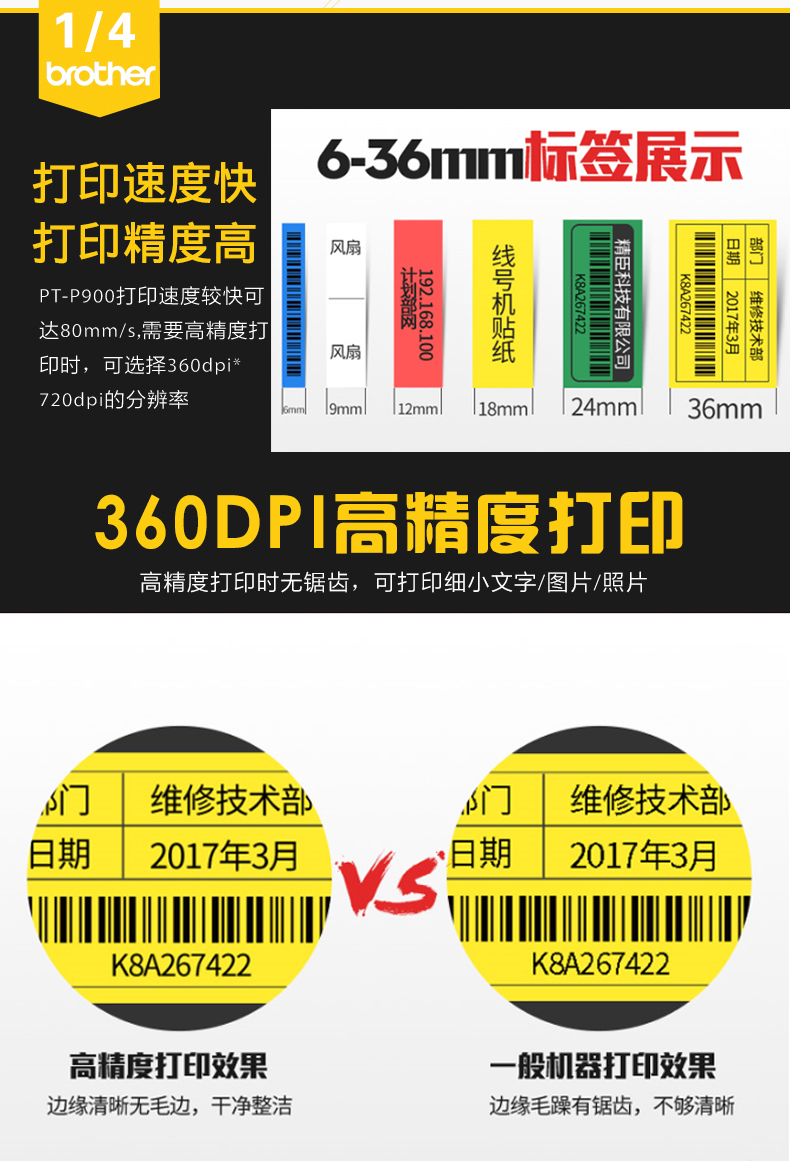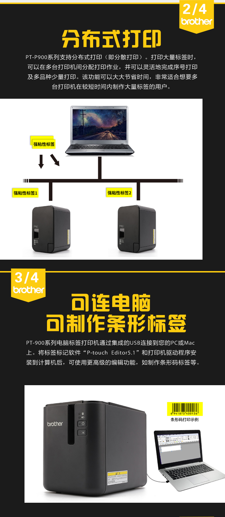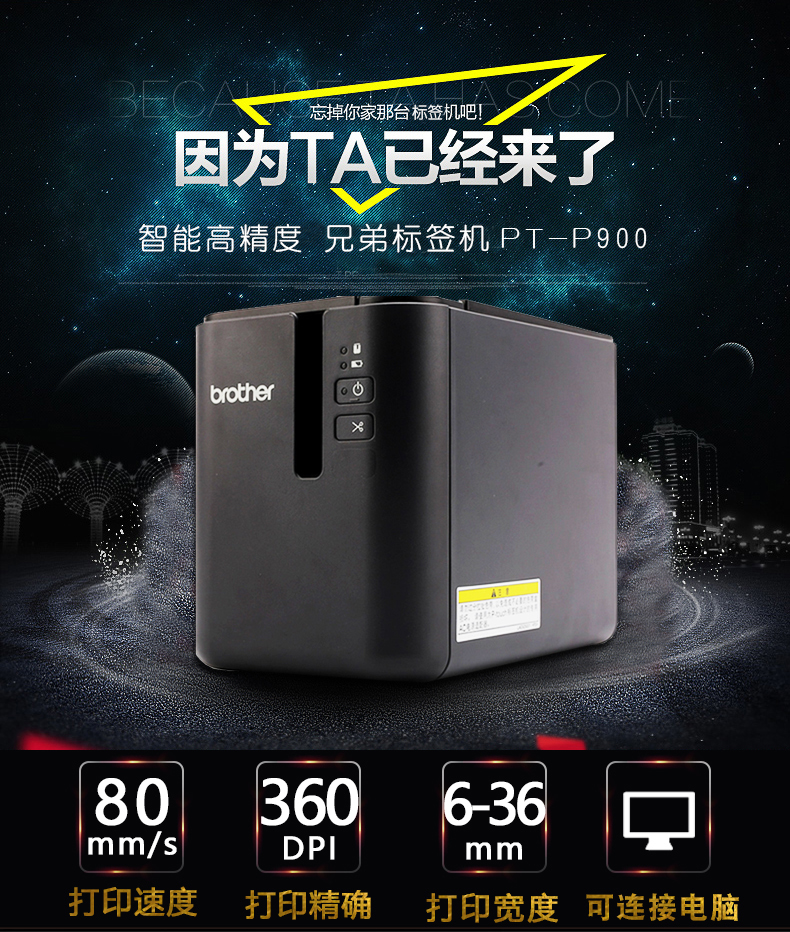 兄弟(Brother)PT-P900电脑标签机/条码打印机 36mm 热敏/热转印 标签打印
