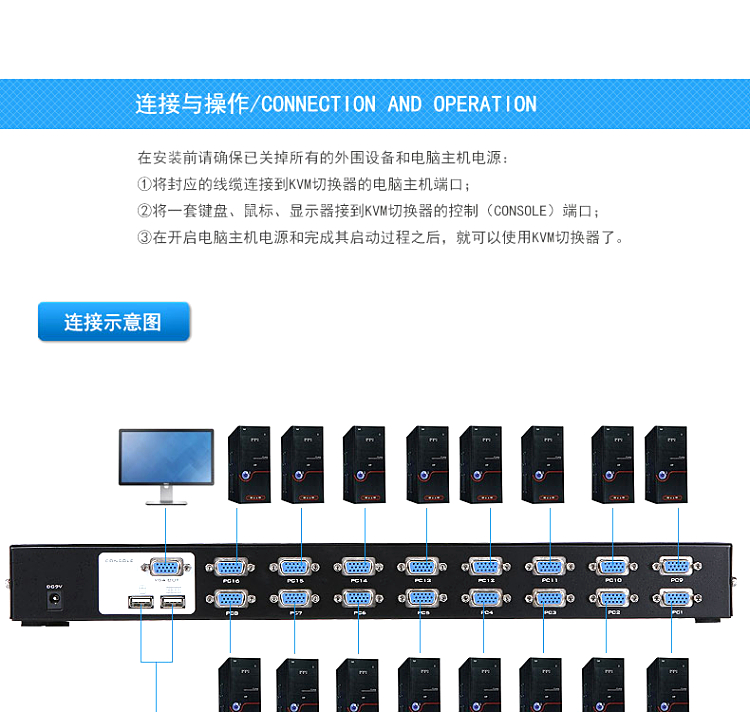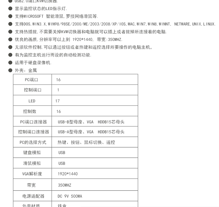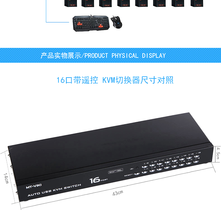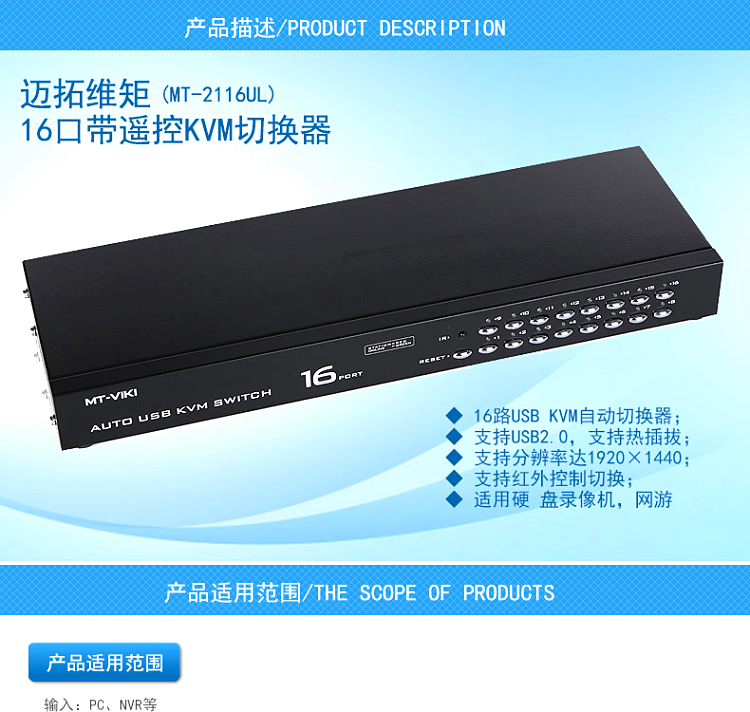 迈拓维矩MT-VIKI MT-2116UL 16口自动KVM切换器 带遥控 自动USB 电脑VGA共享器 机架式