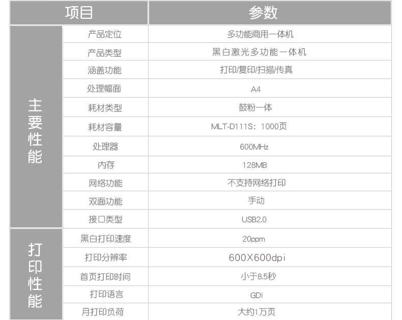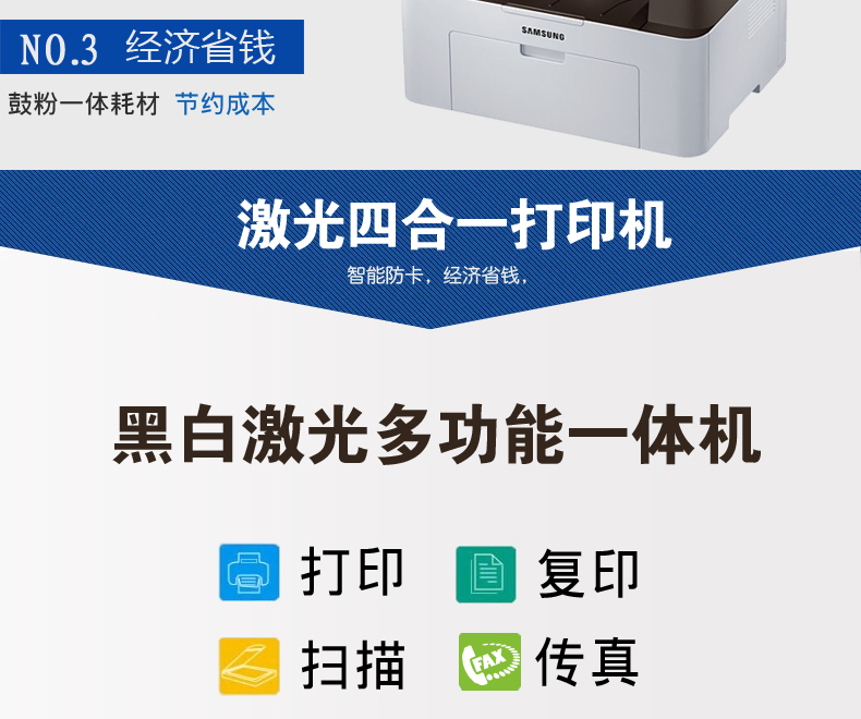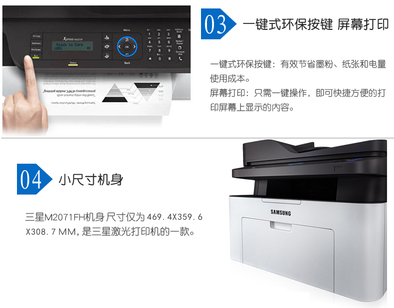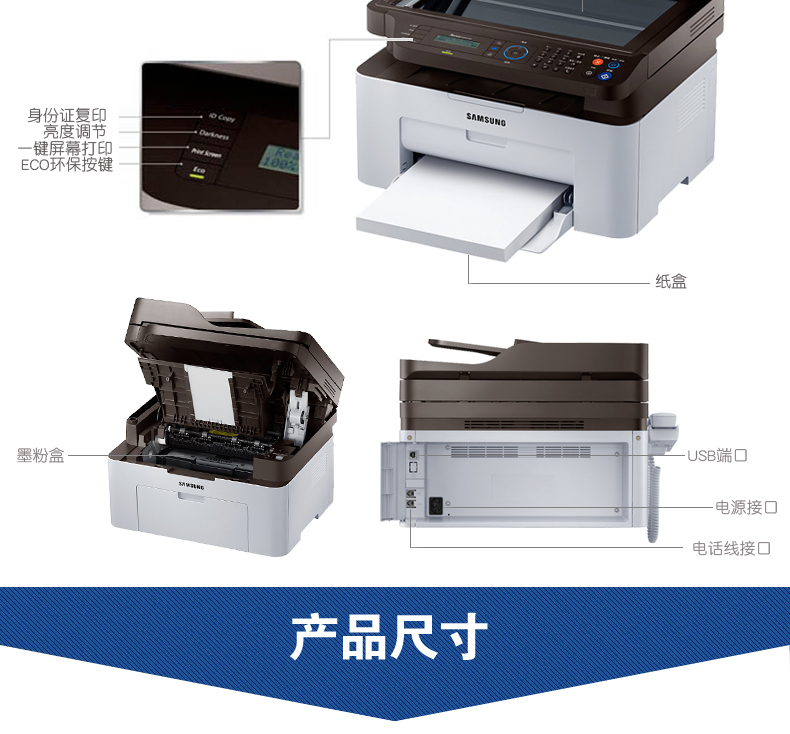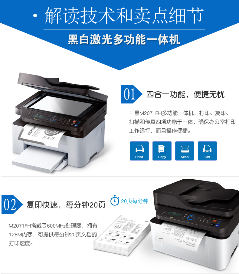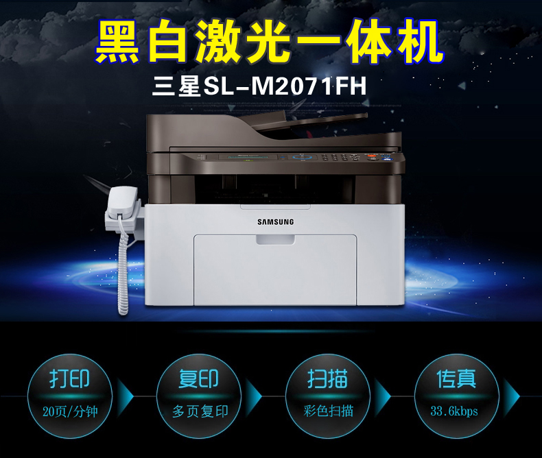 惠普三星 SL-M2071FH 黑白激光多功能一体机 打印复印扫描传真打印机 官方标配