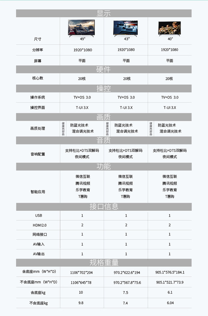 TCL 49F6F 49吋全高清新影音电视 防蓝光 微信互联 DTS/杜比双解码