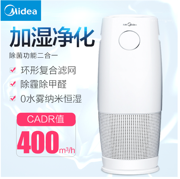 美的(Midea)空气净化器KJ400G-B21 除雾霾甲醛二手烟 WIFI智控加湿净化一体400CADR值40-60㎡