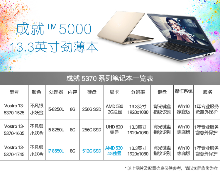 产品名称 : 戴尔(DELL) Vostro13-5370 成就商务八代轻薄固态商务办公快充笔记本电脑 1525银 预订:i5/8G/固态/2G独显