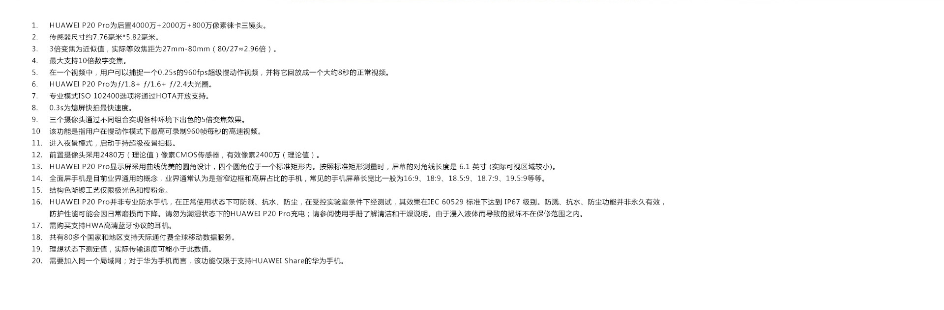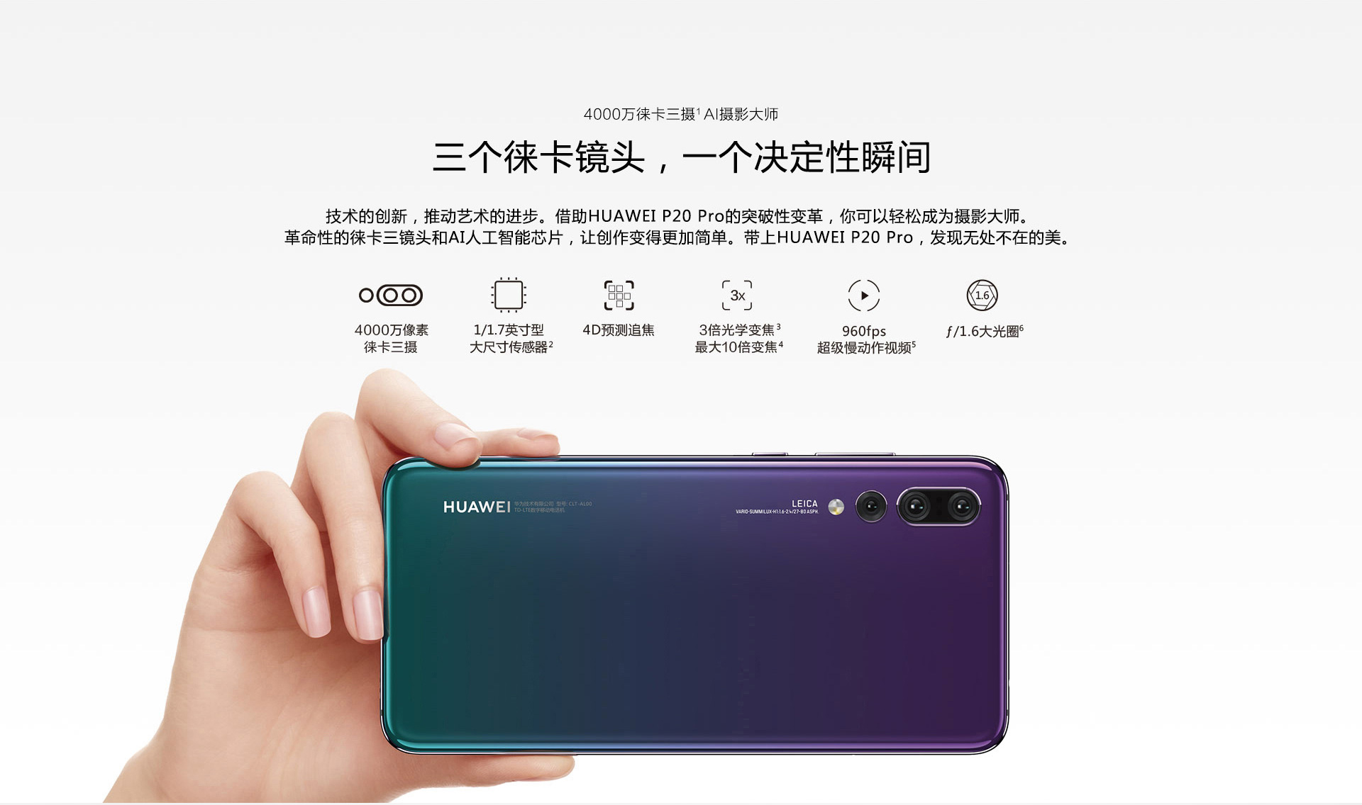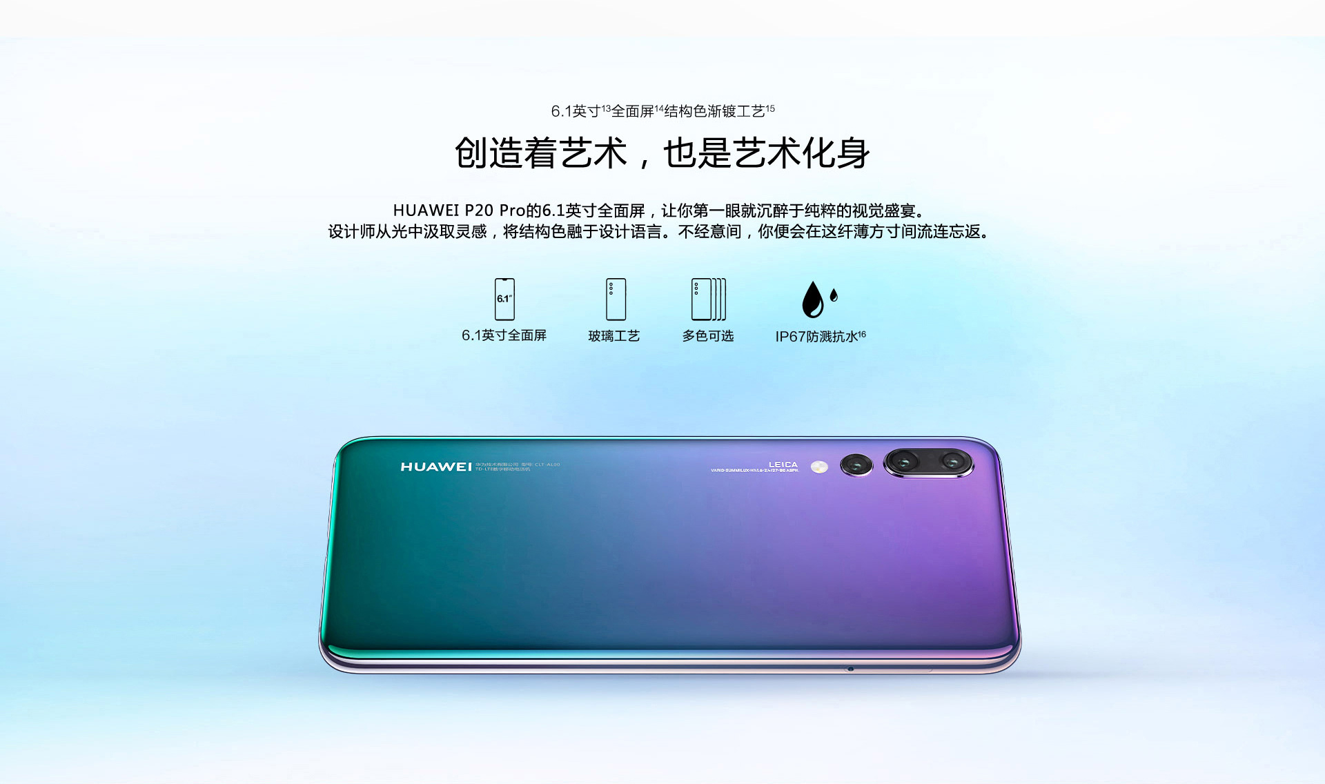 产品名称 : 华为HUAWEI P20 Pro 6GB+128GB 全网通版(亮黑色,极光色,极光闪蝶,珠光贝母)