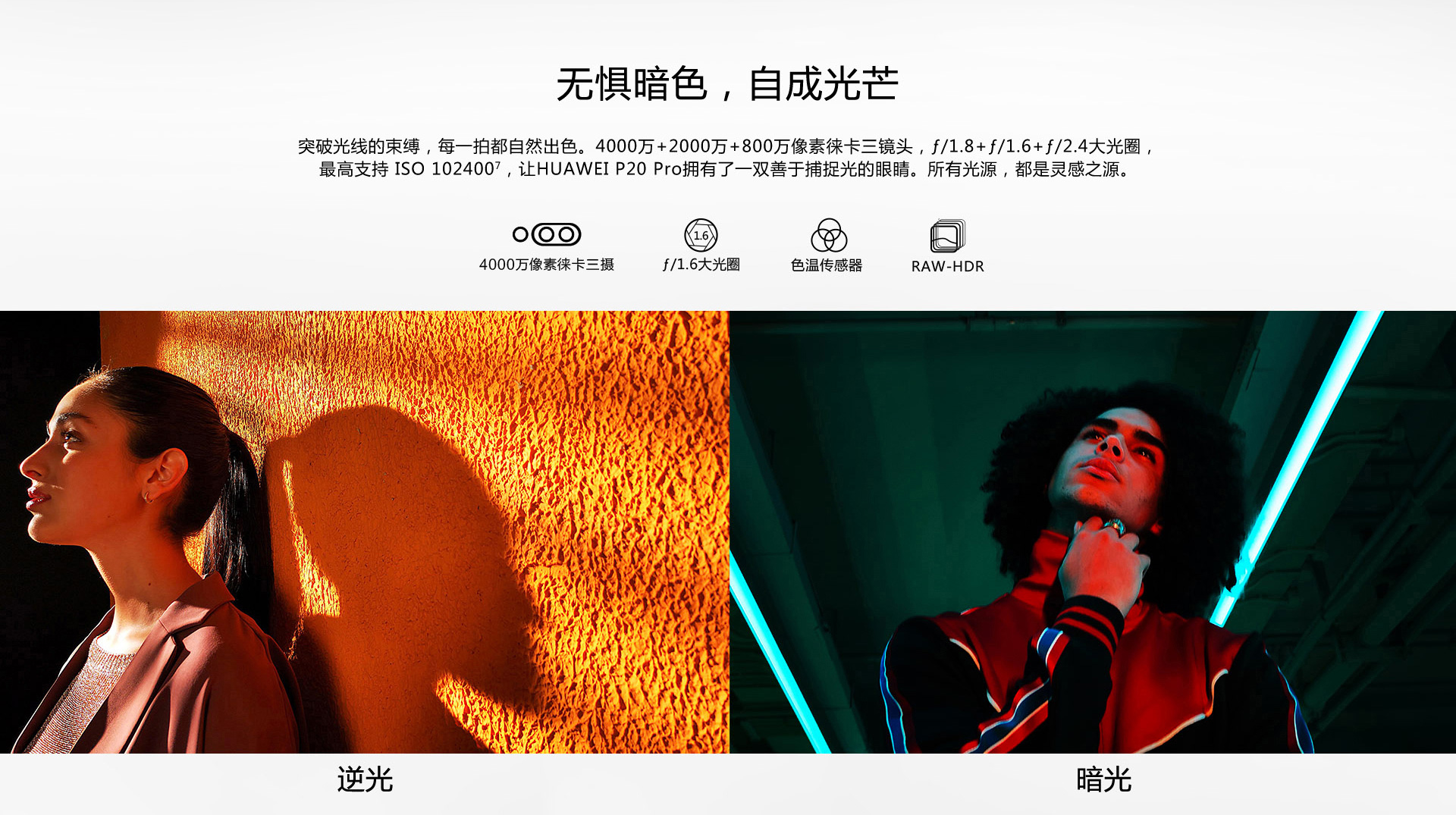 • 后置摄像头4000万像素(彩色,f/1.8光圈)+2000万像素(黑白,f/1.6光圈)+800万像素(长焦,f/2.4光圈),徕卡镜头,支持自动对焦(激光对焦、深度对焦、相位对焦、反差对焦),支持华为AI防抖 (备注:不同拍照模式的照片像素可能有差异,请以实际为准。)