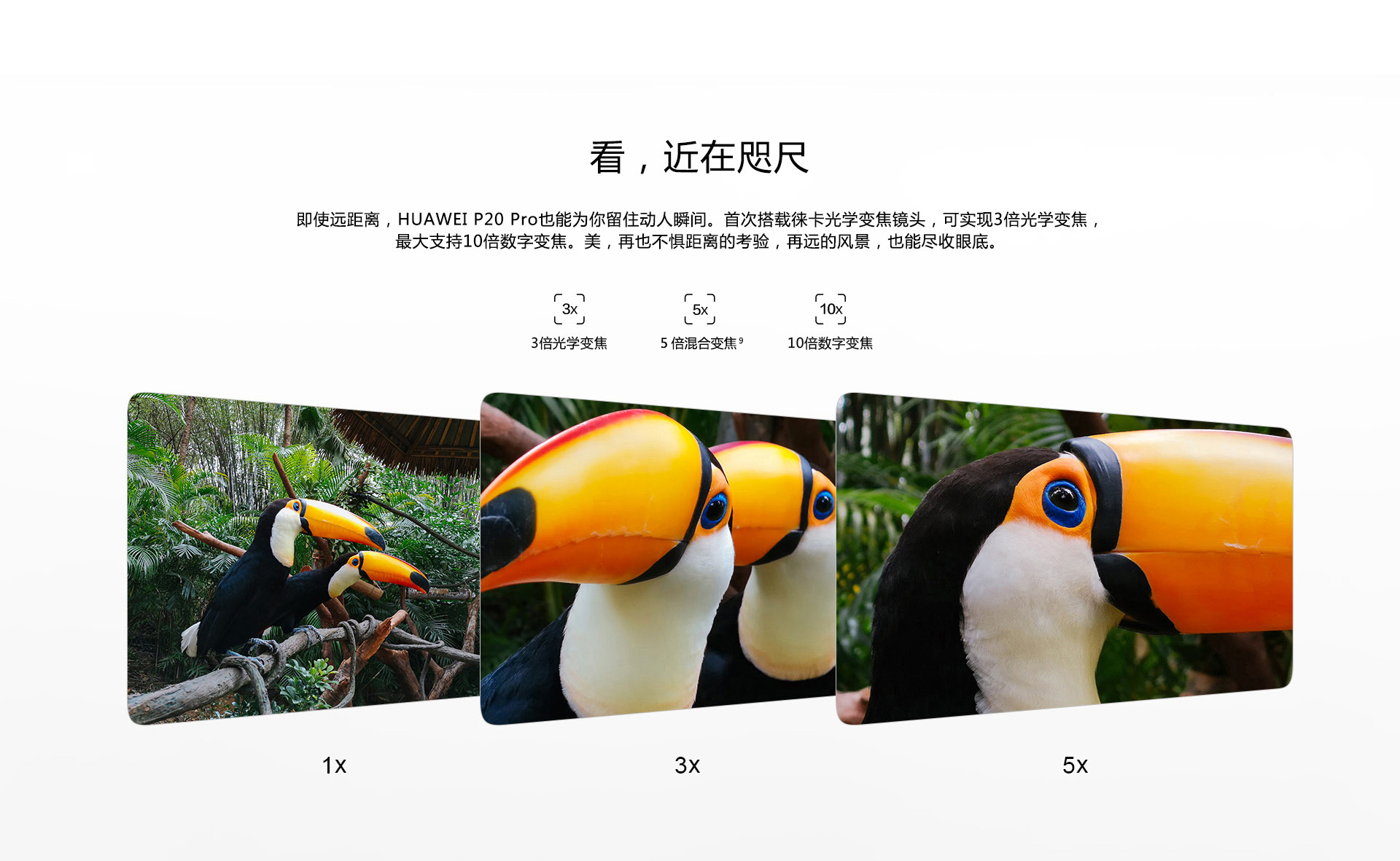 • 变焦模式3倍光学变焦(3倍变焦为近似值,实际等效焦距为27mm-80mm(80/27≈2.96倍))、5倍混合变焦(三个摄像头通过不同组合实现各种环境下出色的5倍变焦效果)