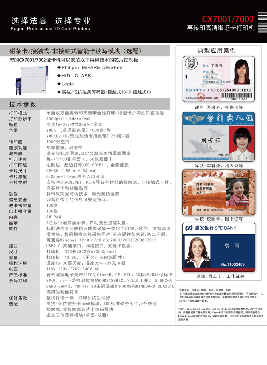 法高(FAGOO)再转印高清晰证 证卡打印机JVC CX7001