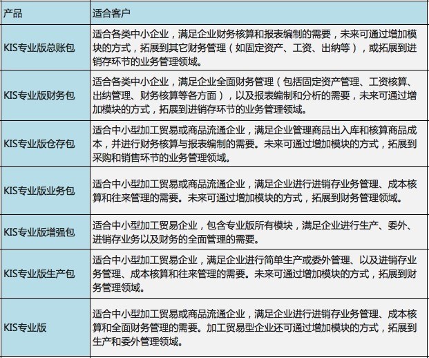 金蝶KIS专业版系列产品包: