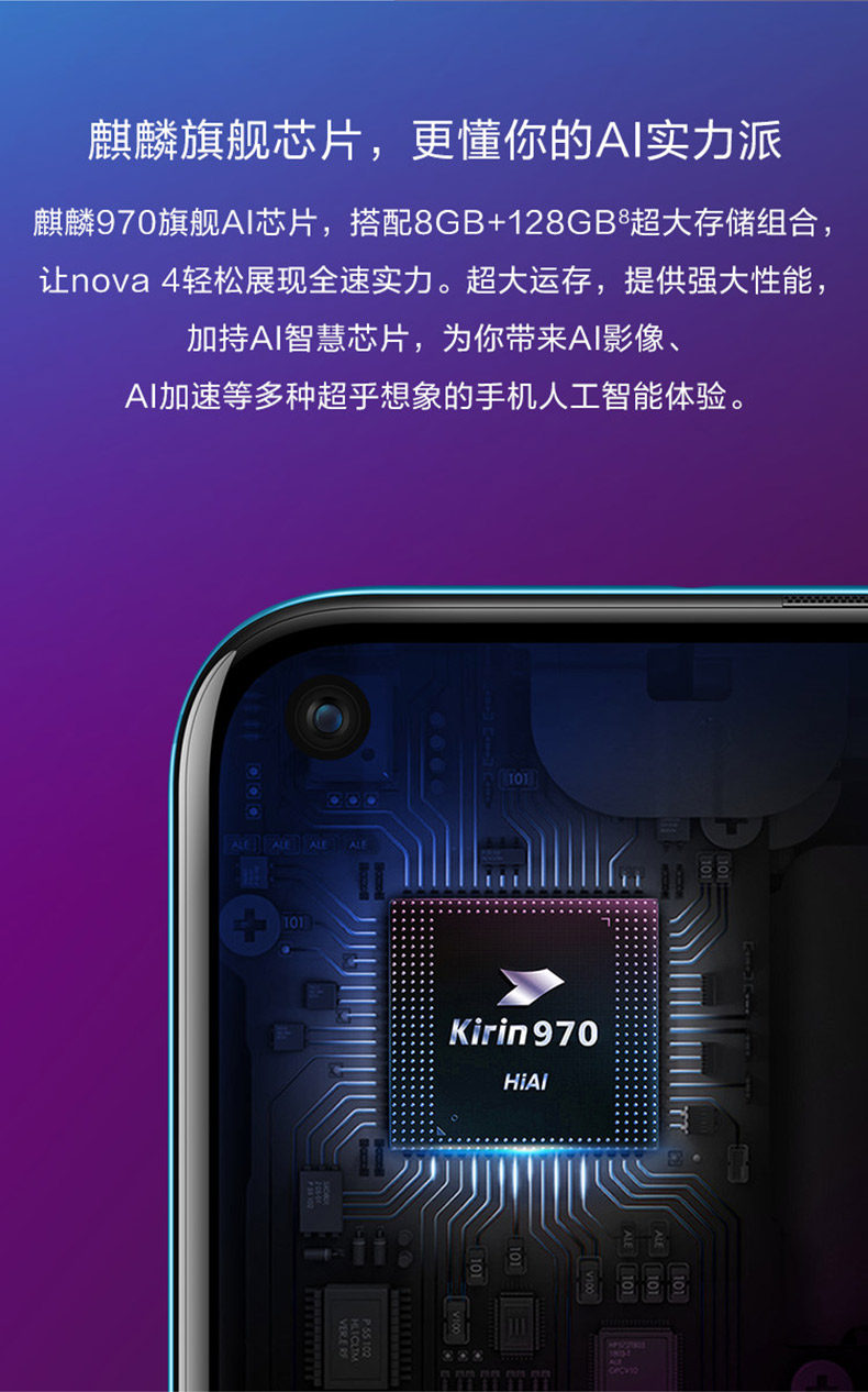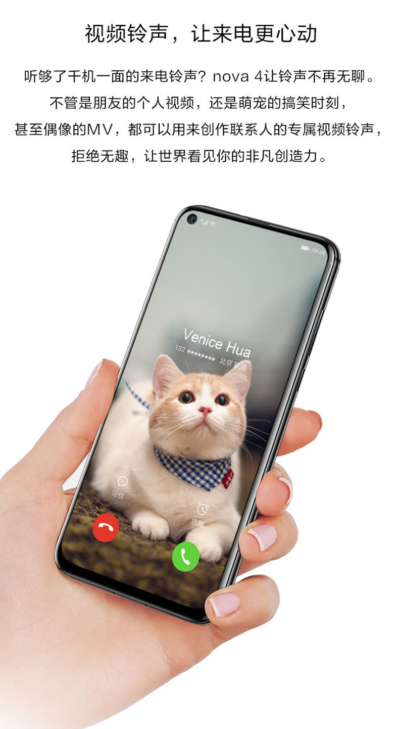 华为NOVA4 8+128 亮黑色 苏音蓝 密语红 贝母白