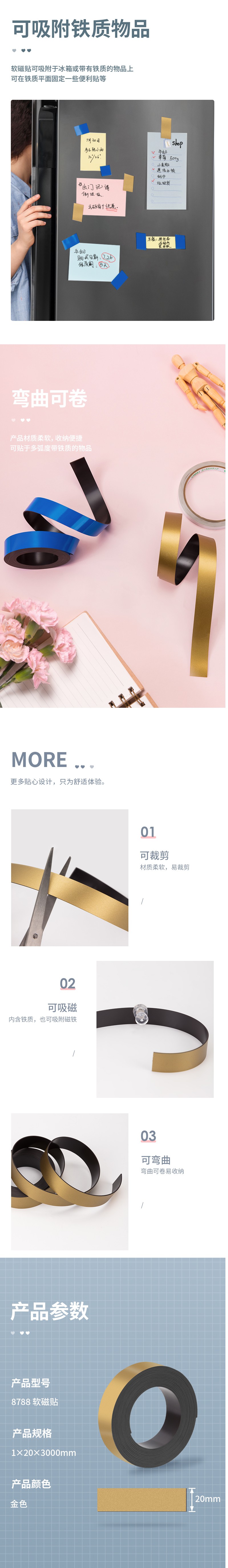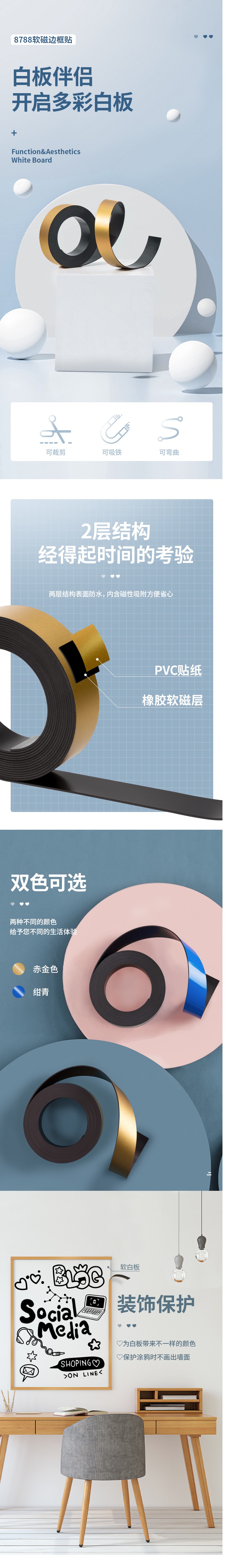 得力8788软磁边框贴3000*20*1mm(金色)(8卡起订)