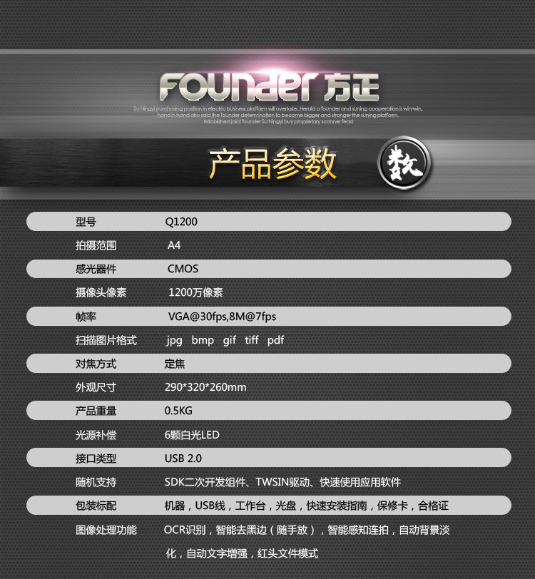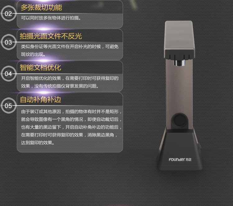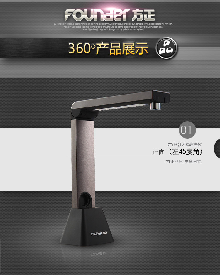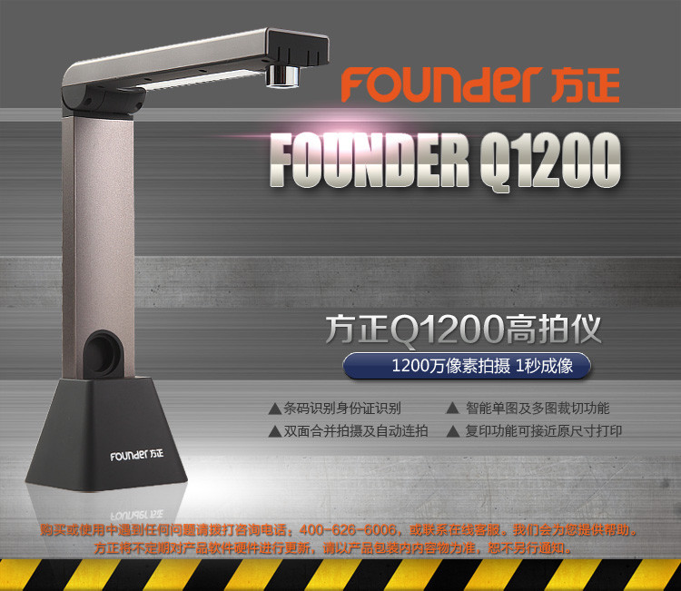 方正(FOUNDER) Q1200 A4便捷照片扫描仪 1200万像素高拍仪办公家用 高清拍摄仪 金属色