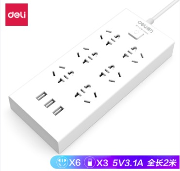 得力18284插座_6组+3U_2米_彩盒装(白)(只)