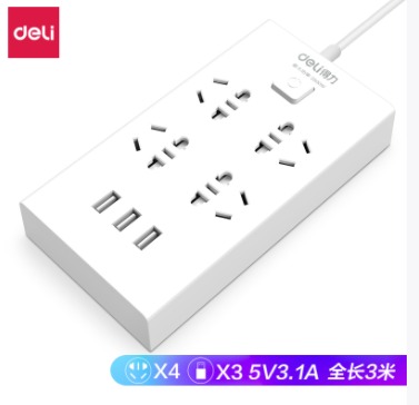 得力18282-03插座_4组+3U_3米_彩盒装(白)(只)