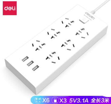 得力18284-03插座_6组+3U_3米_彩盒装(白)(只)