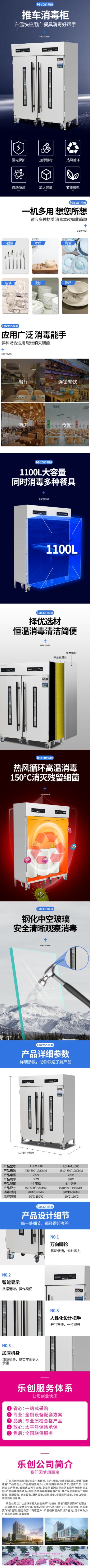 乐创-LeconLC-J-MJ1000工程电脑款双门推车式高温热风循环大容量消毒柜饭堂工厂食堂商用餐盘款消毒柜