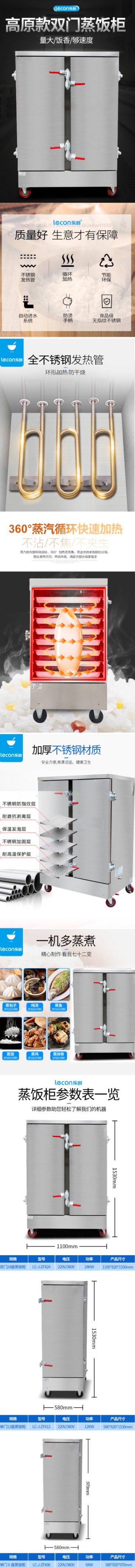 乐创 (lecon)商用蒸饭柜 6盘立式大容量电蒸饭车蒸鱼柜 LC-J-ZFX06