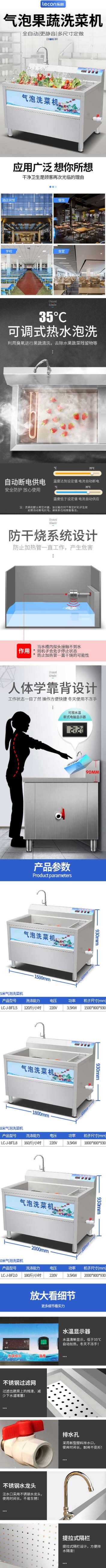 乐创 lecon 商用果蔬清洗机1.8米大型厨房设备气泡洗菜机 LC-J-BF1.8