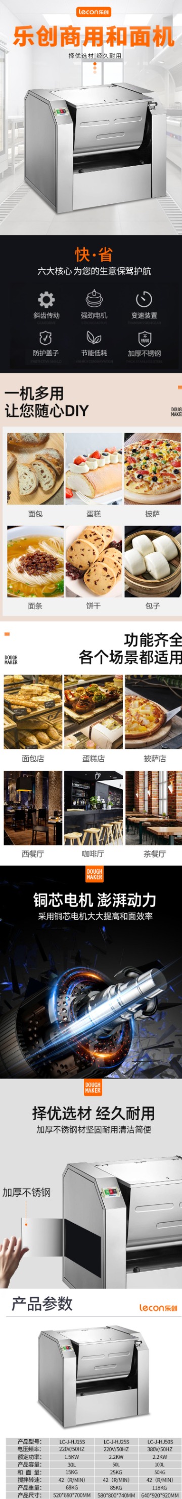 乐创(lecon) 商用和面机 15KG不锈钢揉面机活面搅面机 LC-J-HJ15S