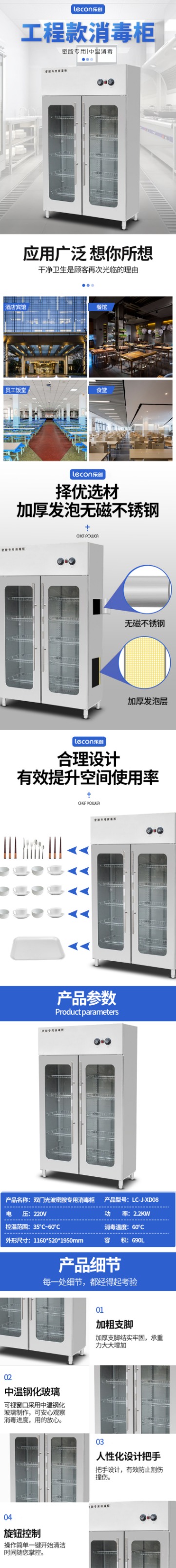 乐创(lecon) 商用双门消毒柜 光波热风循环密胺专用消毒柜 LC-J-XD08