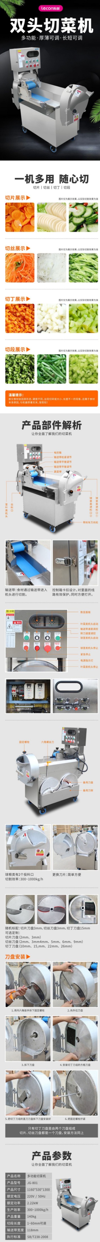 乐创(lecon)商用多功能切菜机 304不锈钢食堂土豆黄瓜萝卜切片切丝切丁机 JG-801