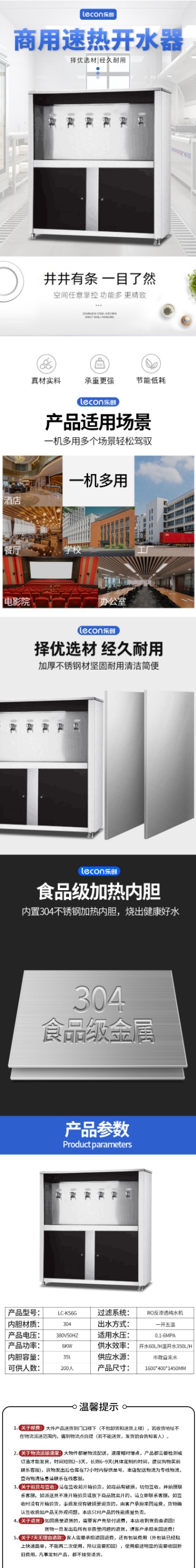 乐创(lecon)商用开水器 学校公司大型不锈钢RO反渗透纯水机 柜式一开五温 LC-J-KS6G