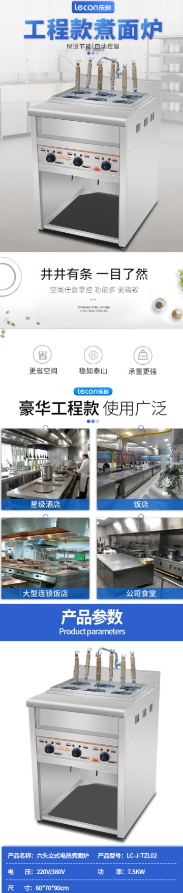 乐创(lecon)商用六头煮面炉 立式电热煮粉机麻辣烫煮饺子锅 LC-J-TZL02