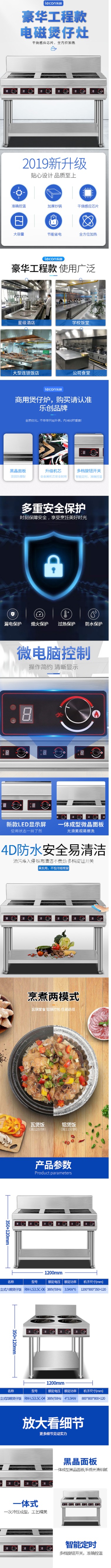 乐创(lecon)商用六眼煲仔炉 花甲锡纸米线麻辣烫电磁炉 层架款 RM-LS3.5C-06