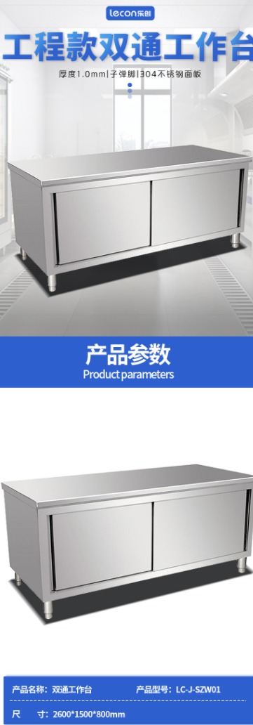 乐创(lecon)商用双通工作台 后厨食堂双层置物柜 LC-J-SZW01