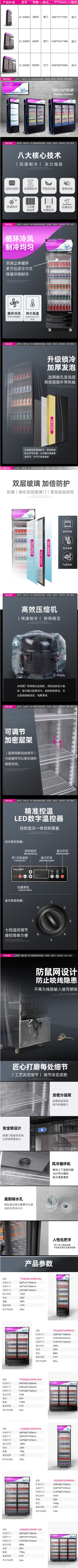乐创(lecon)商用直冷饮料柜 超市便利店双门立式保鲜展示柜(下机组) LC-ZSG03