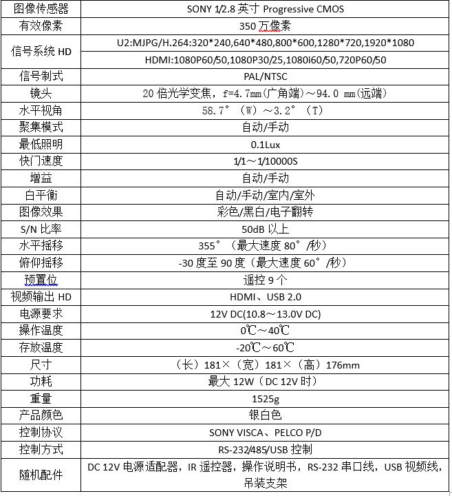 | 产品名称 : | 会议摄像机九天JT-HD40AY |