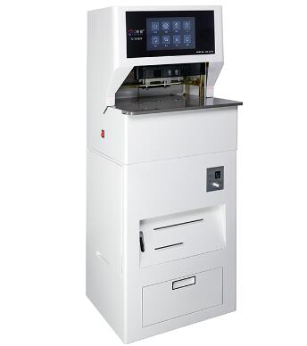 6.机身:全金属外壳,合金工作台,11寸彩色液晶显示屏,带刀垫伸缩滑板,可旋转垫片,镶嵌式抽屉,超静音马达、集文件整理拓展工作台,文件销毁为一体的带万向轮可移动专用柜。
