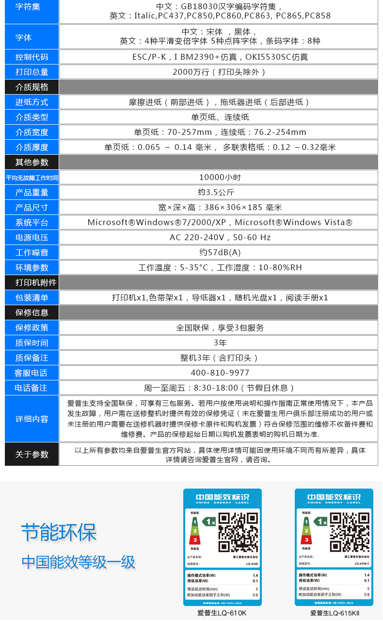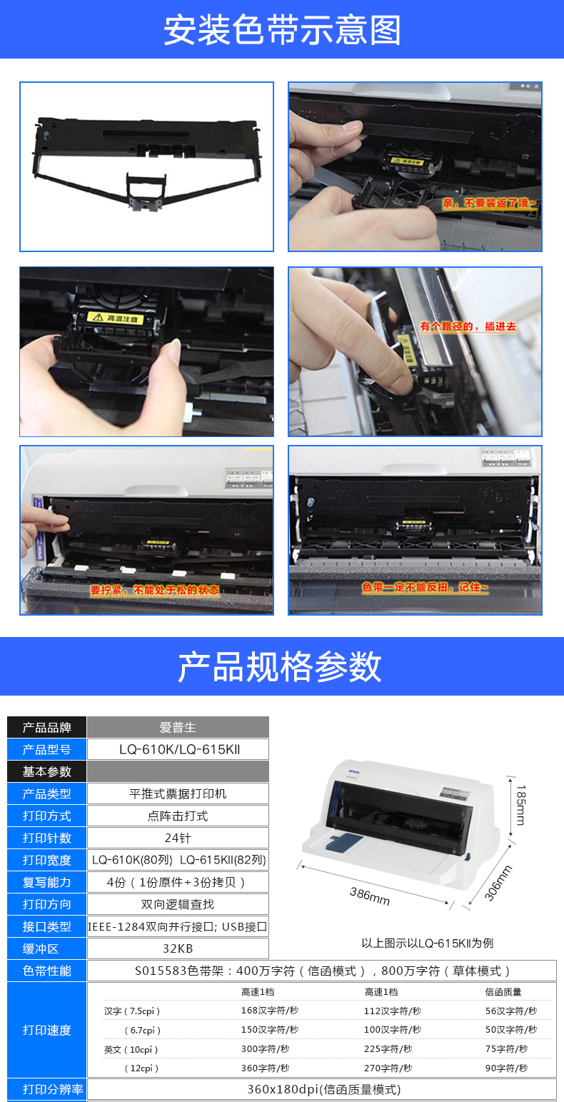 爱普生(EPSON) LQ-615KII 82列平推针式打印机税控发票平推票据