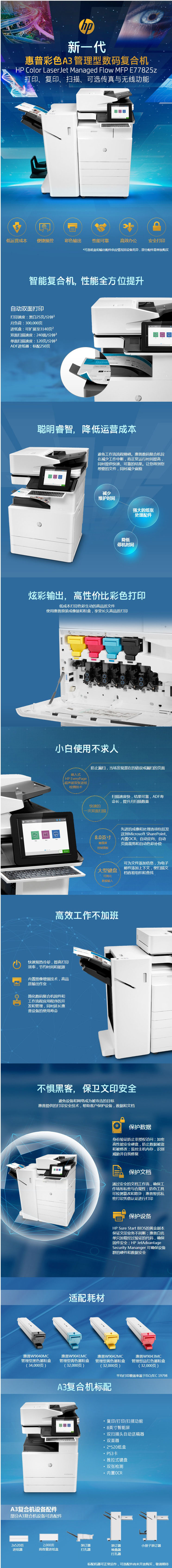 惠普(HP)MFP E77825Z 管理型彩色数码复合打印机一体机复印机双面网络