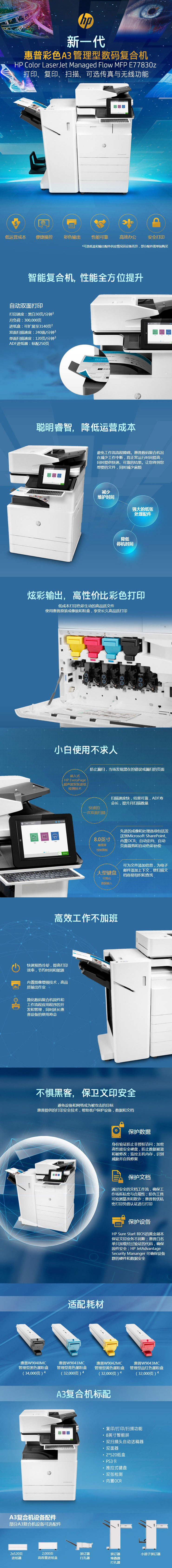 惠普(HP)MFP E77830z 彩色数码复合机打印机一体机(打印、复印、扫描)