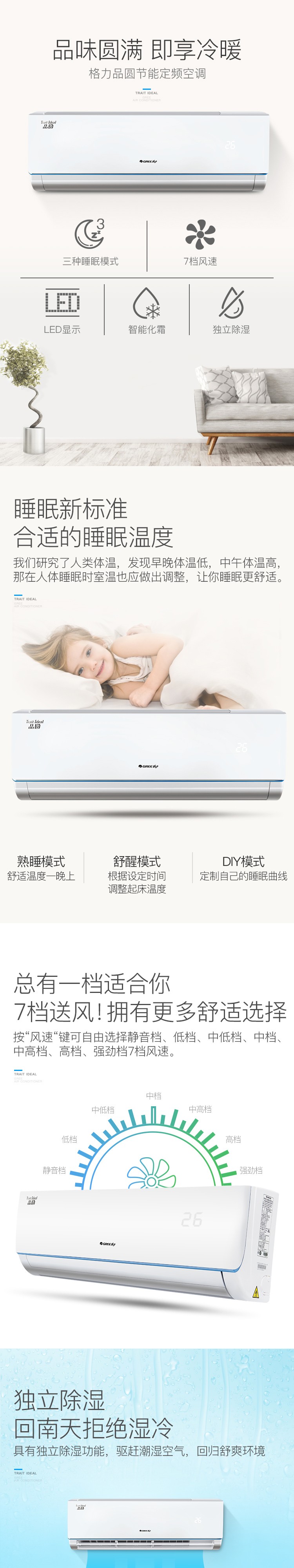 格力(GREE)大1匹 定频 冷暖 独立除湿 挂机空调 KFR-26GW/(26592)NhDa-3 品圆