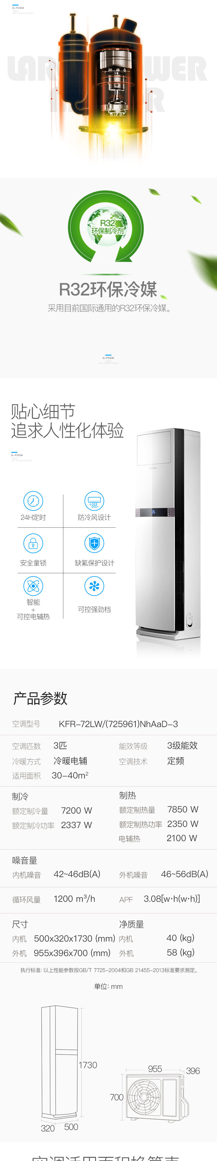 格力 (GREE) 3匹 定频 立柜式冷暖空调KFR-72LW/(725961)NhAaD-3 Q铂