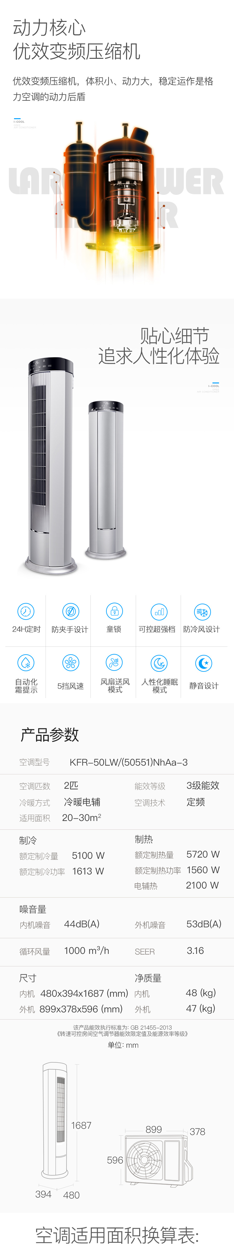 格力(GREE)2匹 定频 冷暖圆柱柜机空调 KFR-50LW/(50551)NhAa-3