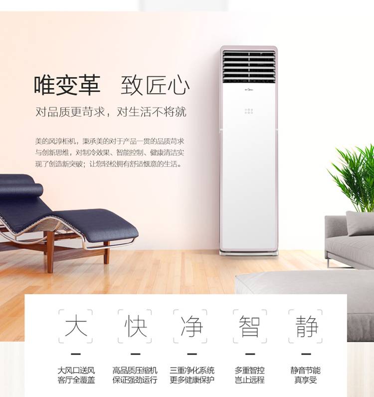 美的(Midea)2匹 风淳 远距离送风 APP智能操控 触屏操作 隐藏显示 冷暖空调柜机KFR-51LW/WPCD3@