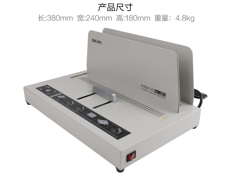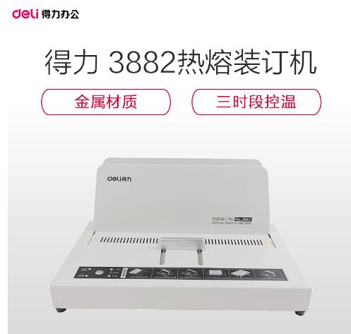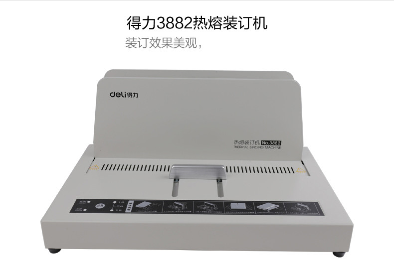 得力(Deli)装订机 3882热熔装订机 热熔胶全自动 A4标书文件财务会计凭证 手动装订