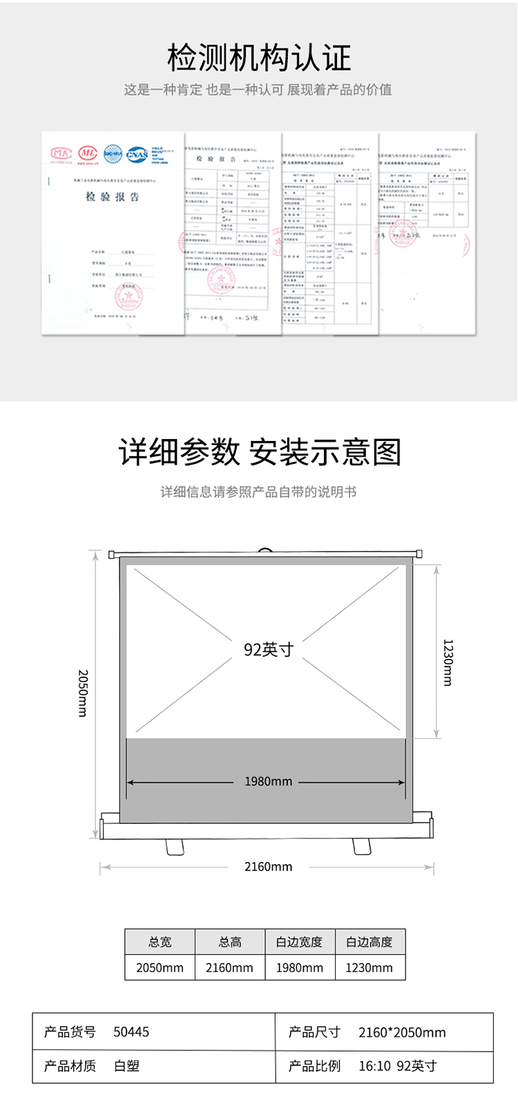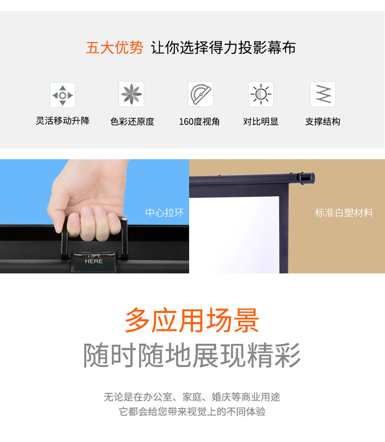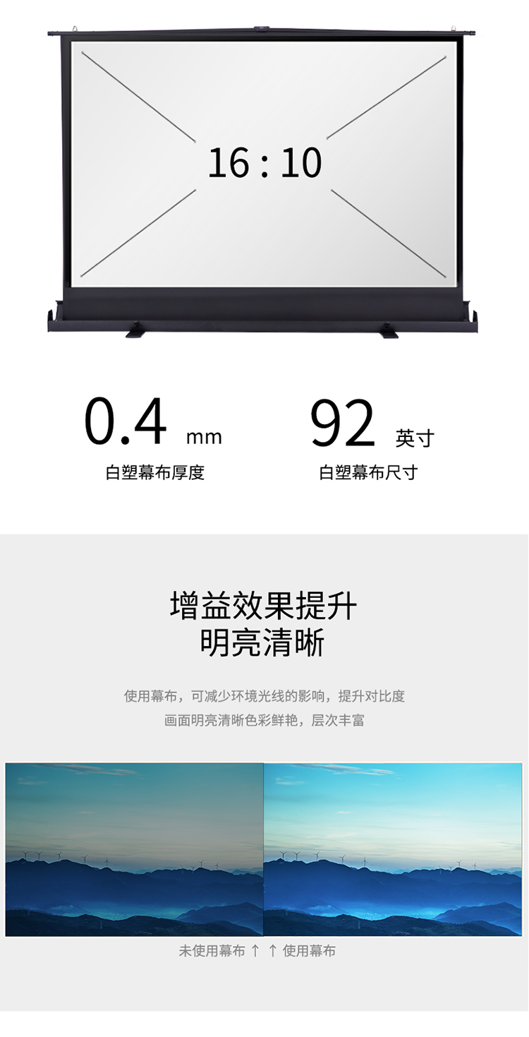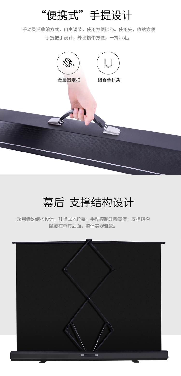 得力(deli)50445幕布92英寸16:10便携式桌面投影幕布/地拉式幕布 双气压杆 铝合金