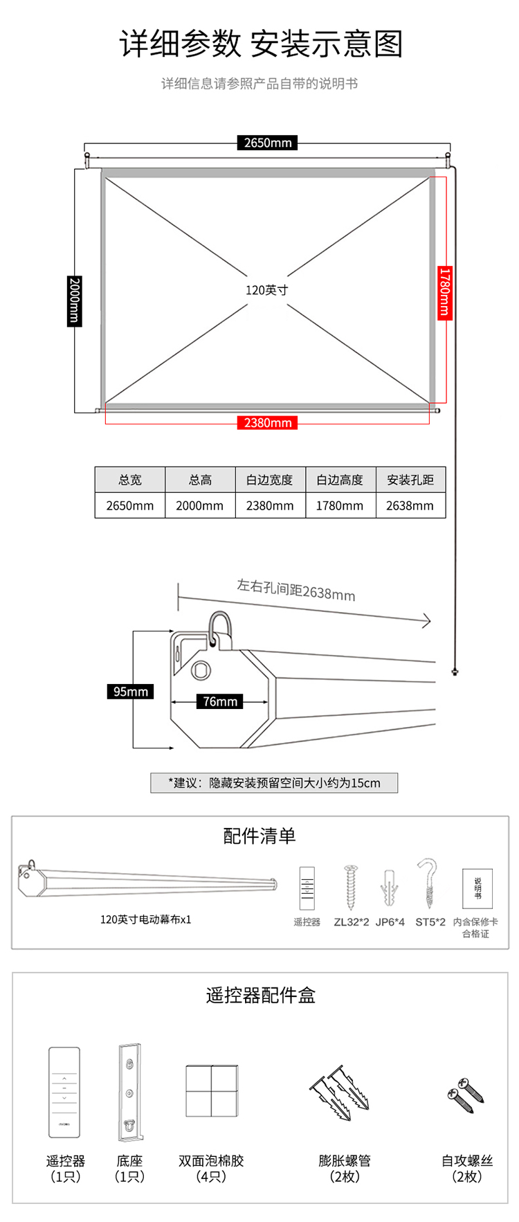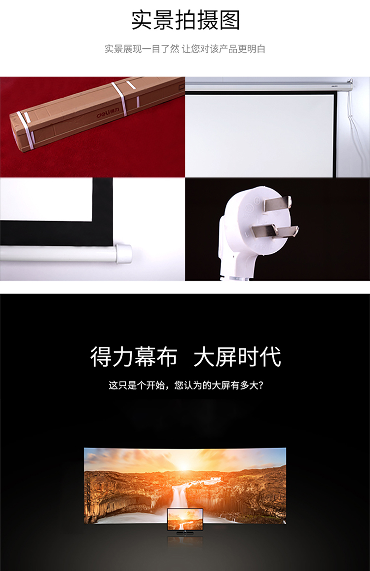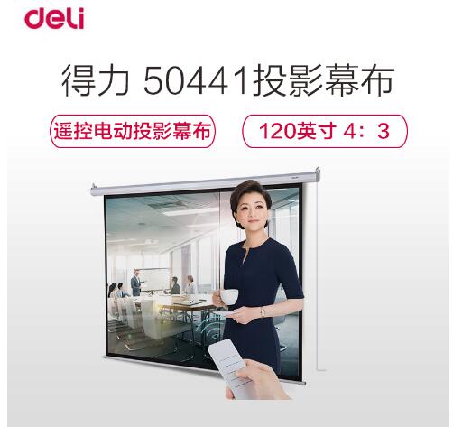 得力(deli)50441幕布120英寸 4:3遥控电动投影幕布投影布(标配遥控器) 家用投影仪幕布