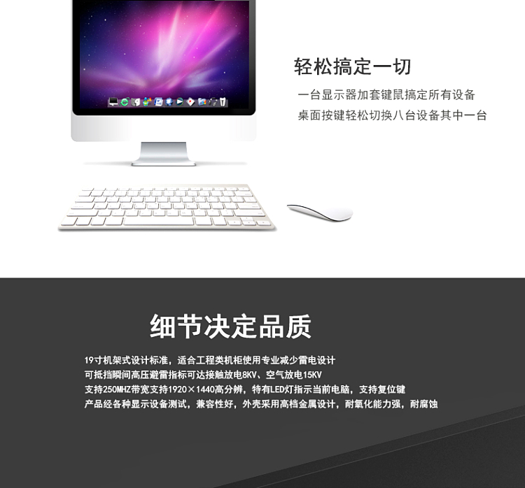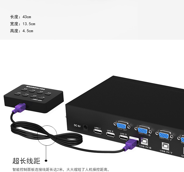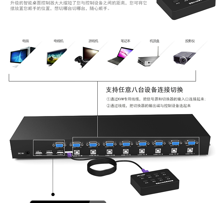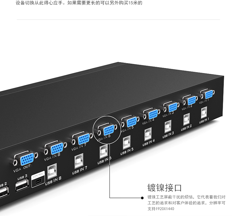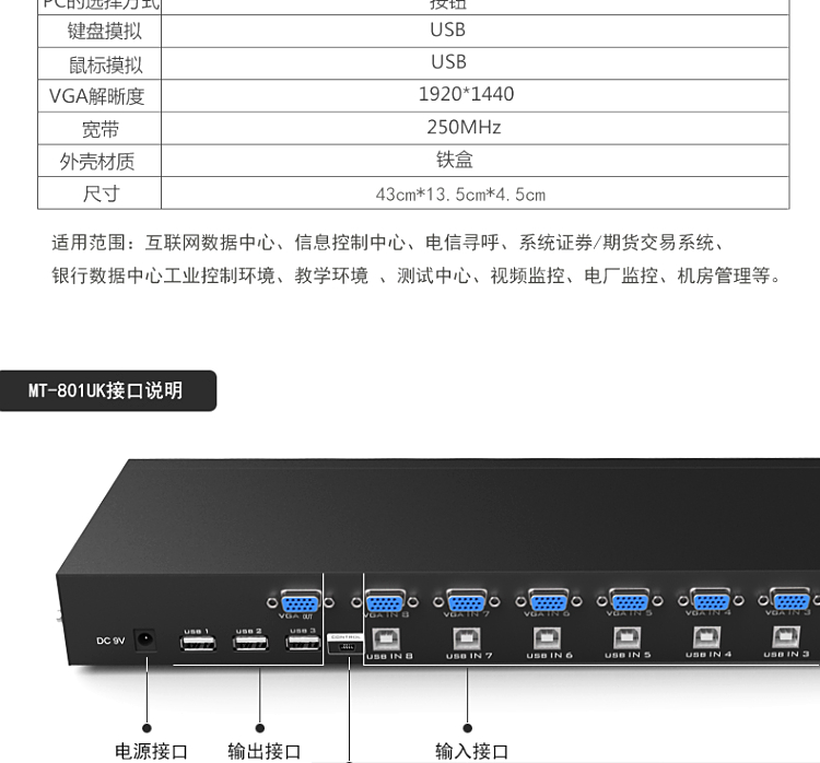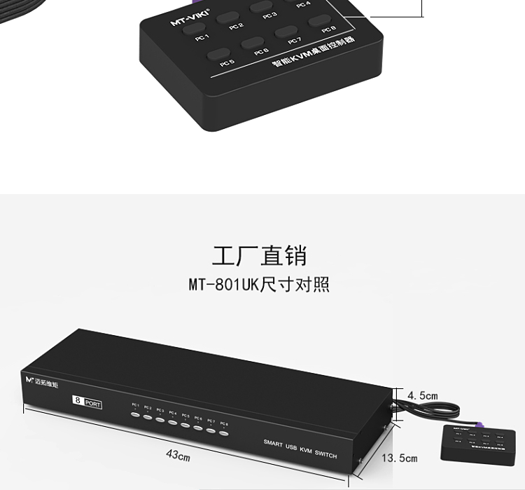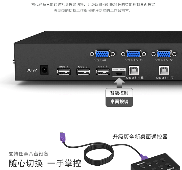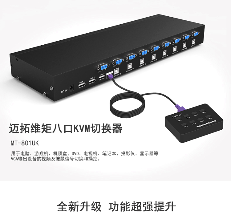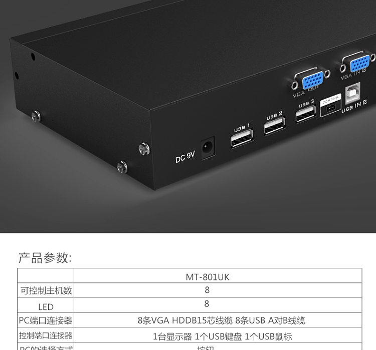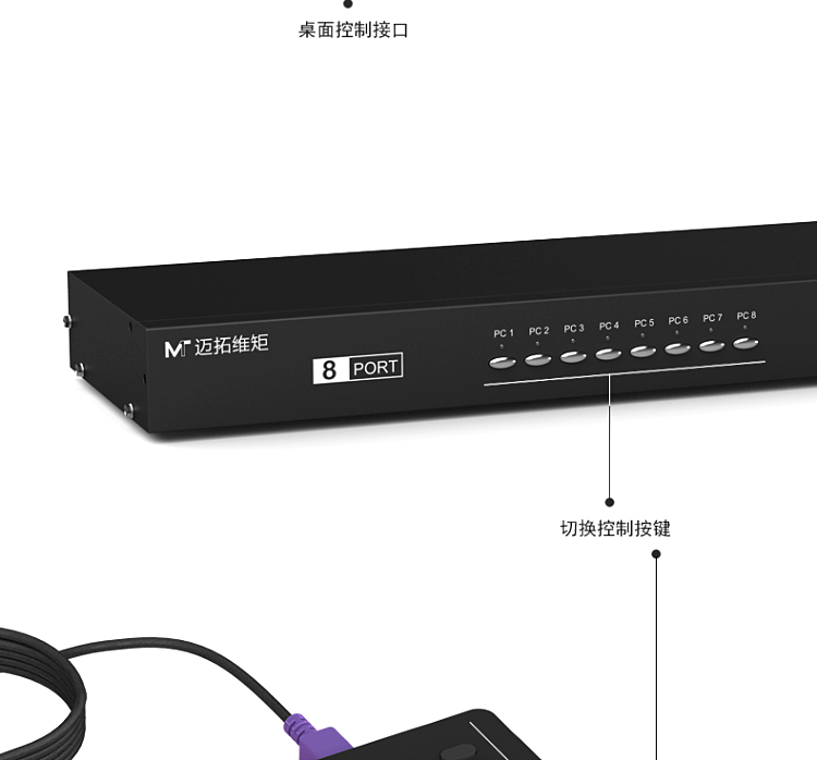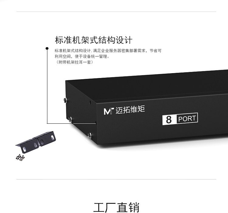 迈拓维矩 MT-801UK 8口VGA手动USB KVM电脑切换器 19英寸机架式 配1.5米线